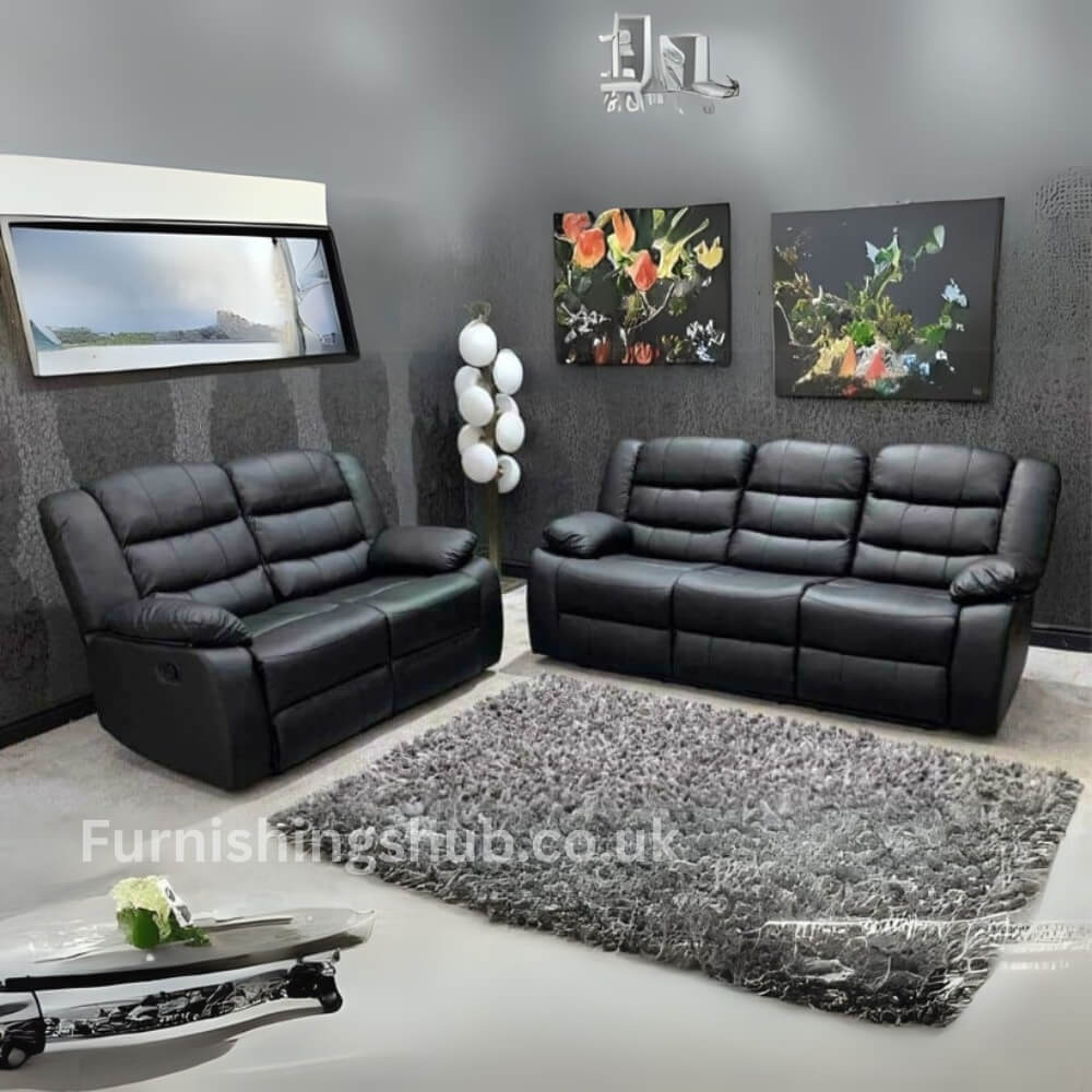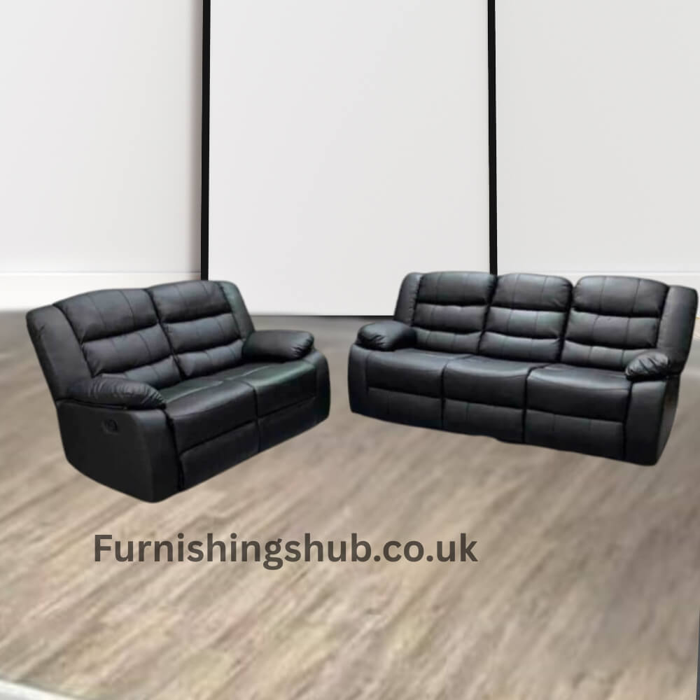 The Roma Recliner 3+2 Seater Sofa Set combines comfort, durability, and modern design, making it a perfect choice for any living space. Crafted in high-quality faux leather, this set offers a luxurious look while being easy to clean and maintain.