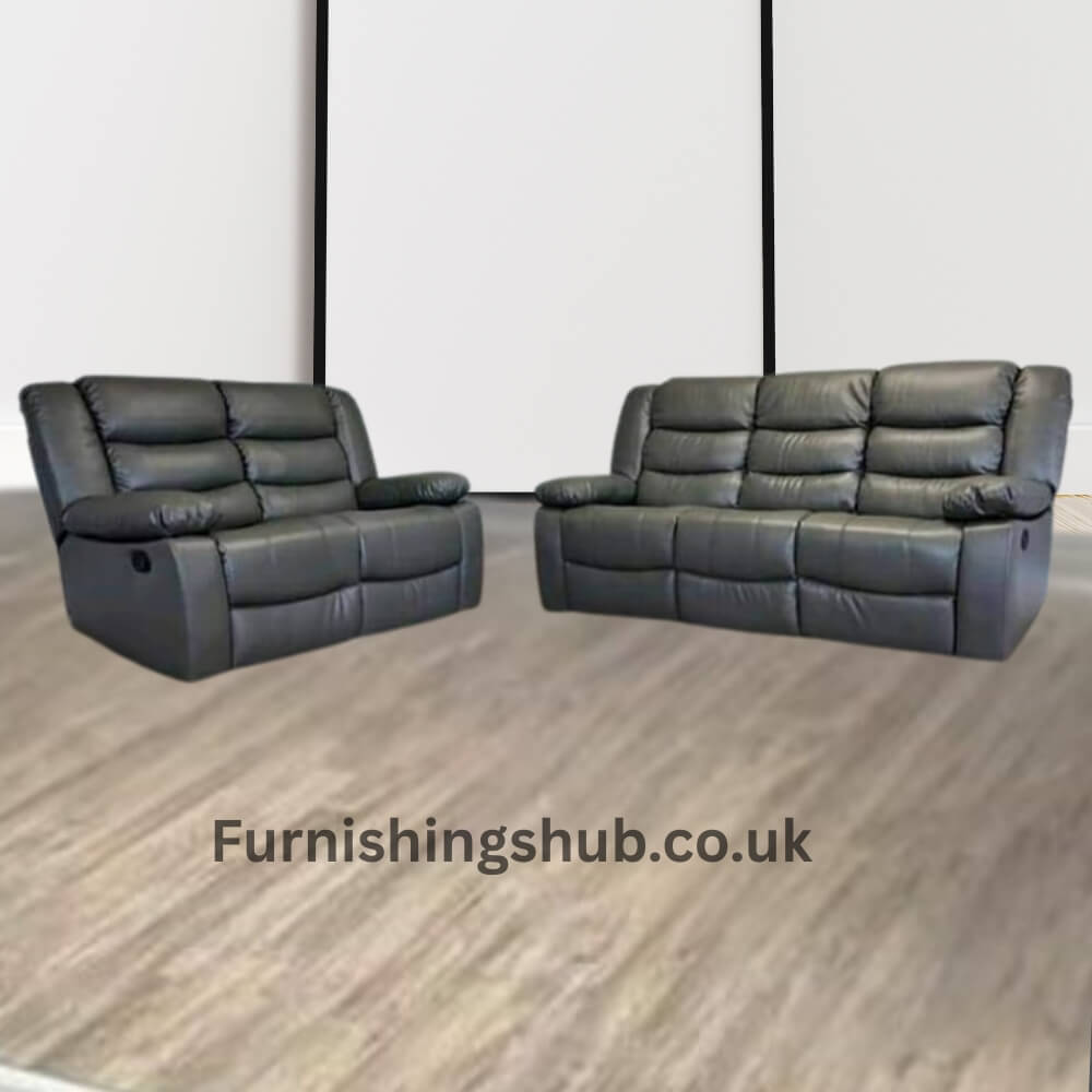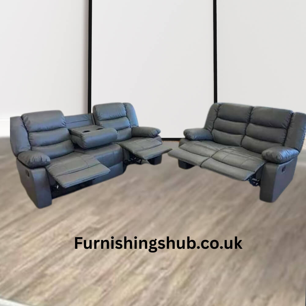 The Roma Recliner 3+2 Seater Sofa Set combines comfort, durability, and modern design, making it a perfect choice for any living space. Crafted in high-quality faux leather, this set offers a luxurious look while being easy to clean and maintain.